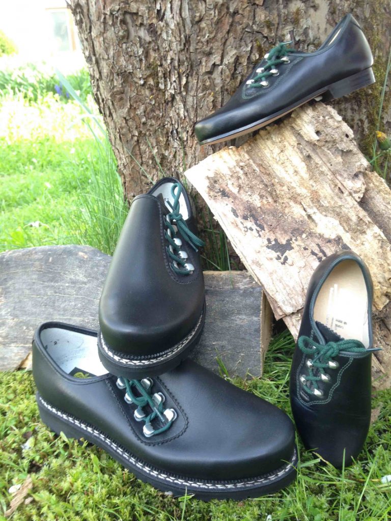 Schuhe Original Miesbacher Platterschuh mit Ledersohle und Lederabsatz. Rahmengenähter Haferlschuh mit Gummisohle.
